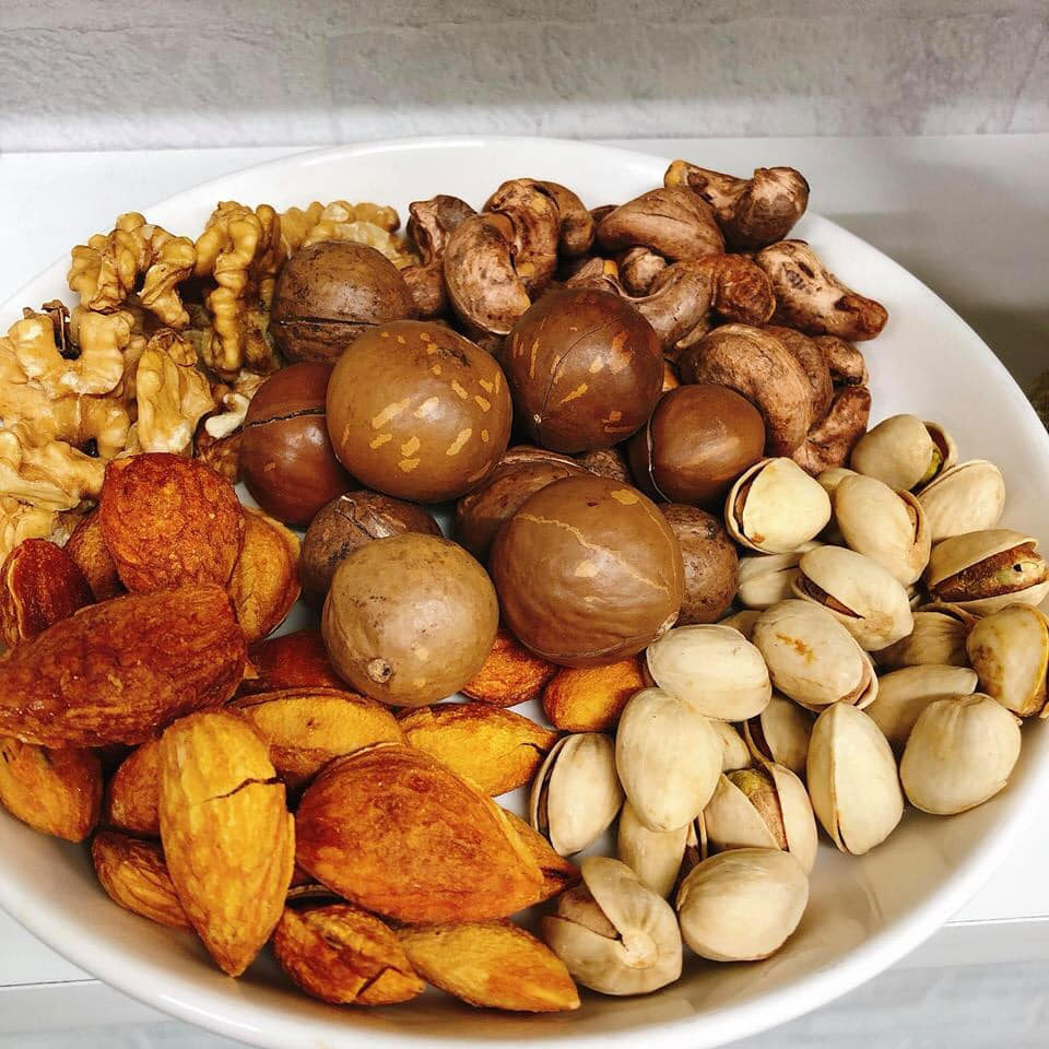 - Thành phần: Hạt óc chó, hạt điều, hạt dẻ cười, hạt hạnh nhân, hạt macca