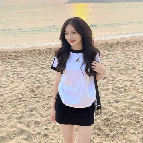 - Áo baby tee thun nữ dễ phối đồ. Bạn có thể phối với quần jean, chân váy, … kết hợp với một đôi sneaker cho bạn tự tin xuống phố