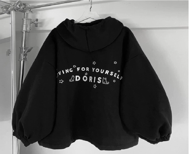 Áo khoác nỉ logo mèo in trước sau tay bồng