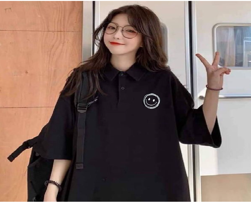 - Tên SP:Áo Polo tay lỡ ,Aó polo unisex in hình mặt cười,phong cách Hàn,nam nữ mặc cực chất.