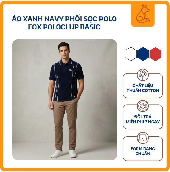 Áo Polo Nam Fox Polo Club – Xanh Navy Phối Sọc AA3312