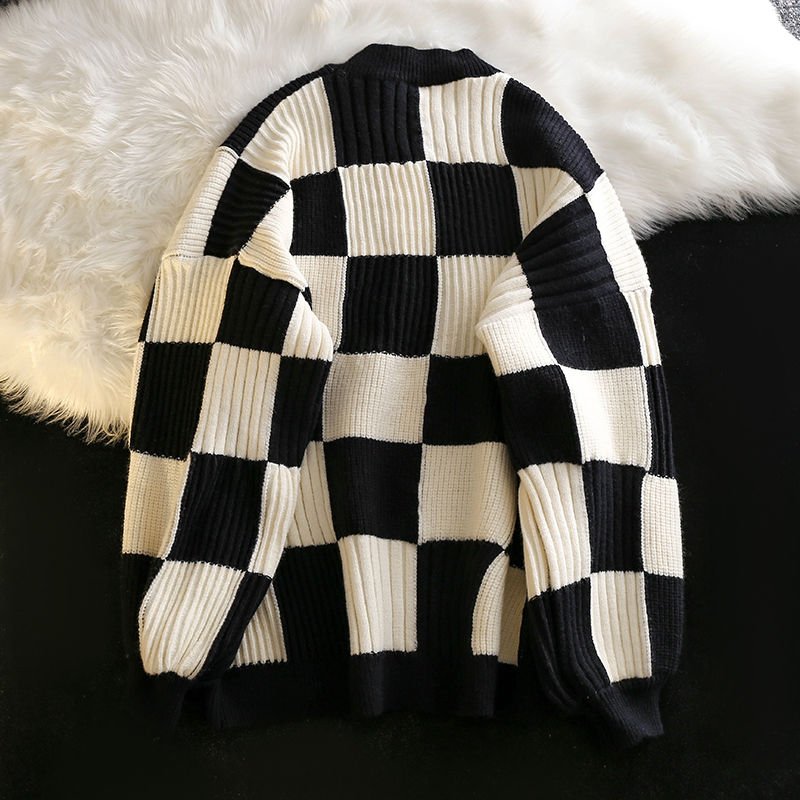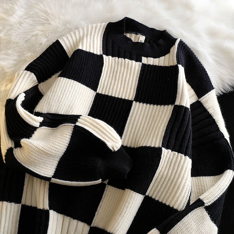 Áo sweater kẻ ô vuông đen trắng Thedino5