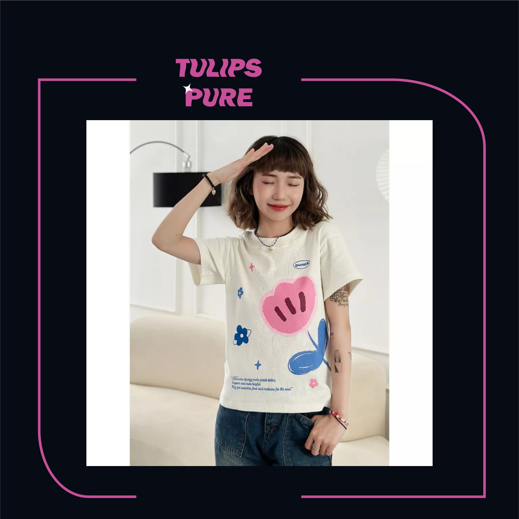 Áo thun tay lỡ form rộng unisex hoa TULIPS hottrend nữ phong cách ulzzang hàn quốc