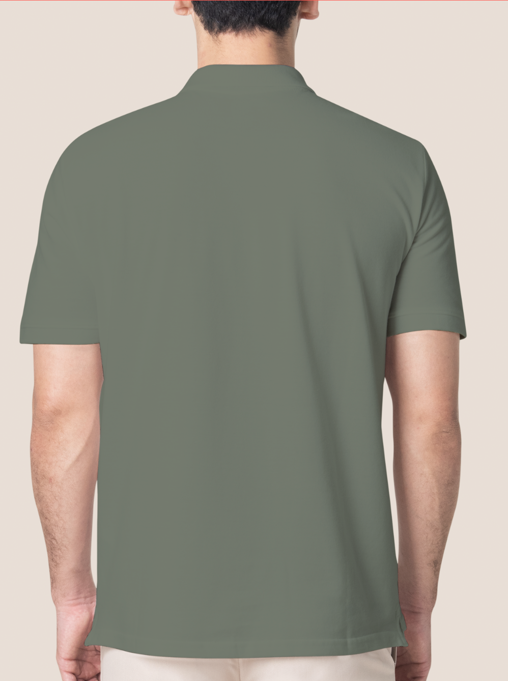 1/ Phối đồ với áo thun có cổ trơn màu xanh rêu