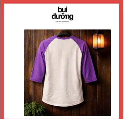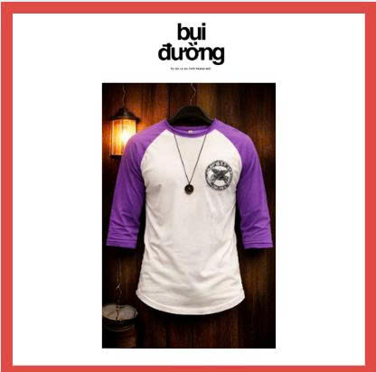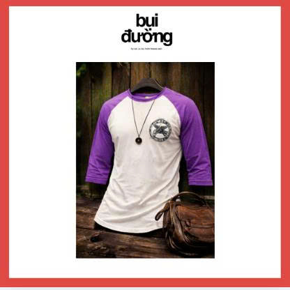 Thiết kế raglan tay lỡ 3/4 kết hợp giữa thân áo sáng và tay áo tím tạo nên sự tương phản hài hòa, giúp tổng thể trở nên năng động và trẻ trung hơn. Đây là kiểu áo phù hợp với xu hướng streetwear hiện đại, được nhiều bạn trẻ yêu thích.