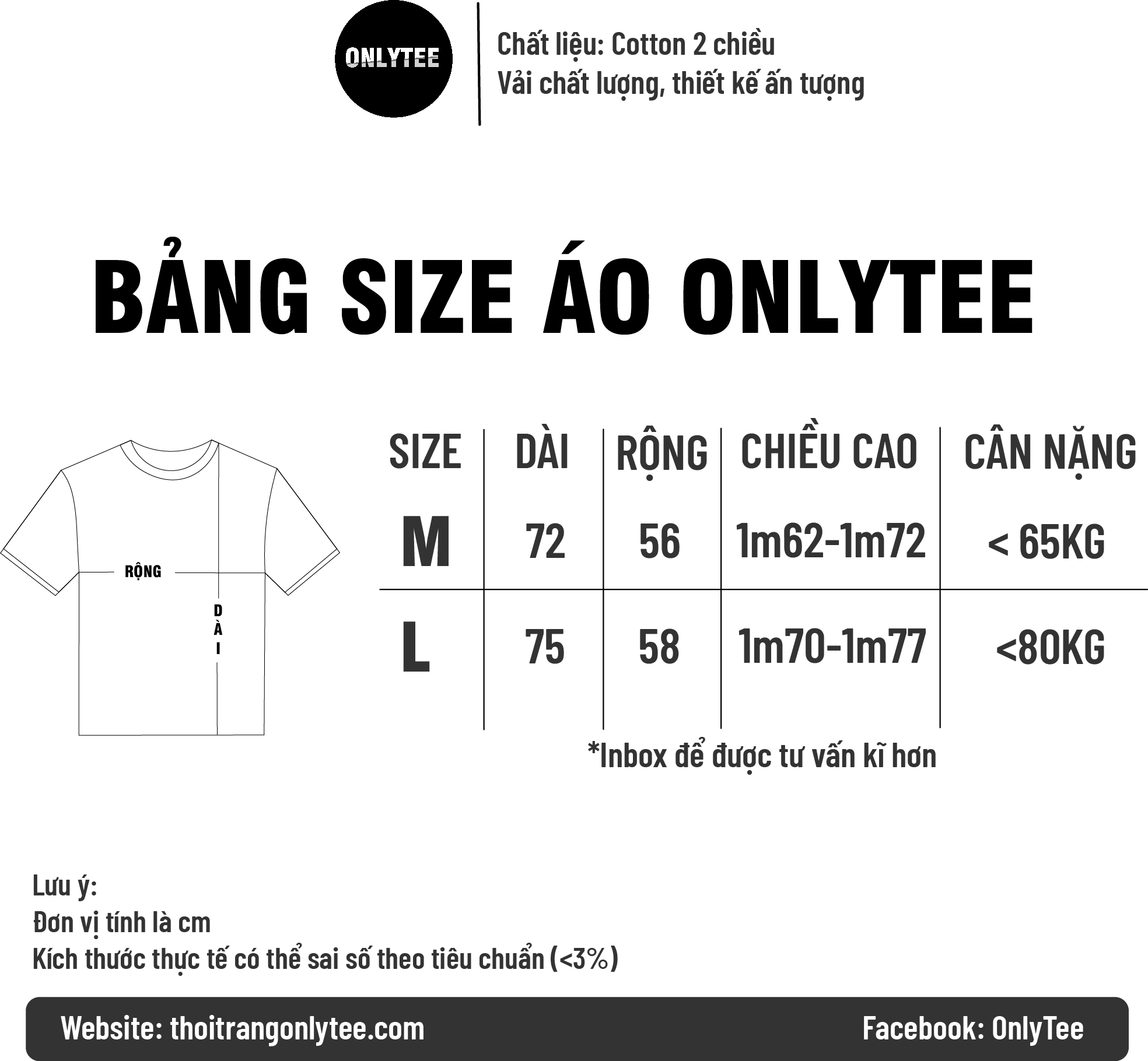 ● THÔNG TIN SẢN PHẨM - Tên sản phẩm: Áo Thun UNISEX Local Brand OnlyTee 100% Cotton Co Dãn Form Rộng OLTXL - Màu sắc: Đen/ Trắng - Áo có 2 size: M/ L ● ĐẶC ĐIỂM NỔI BẬT - Chất vải áo thun Cotton 100% 2 chiều thoáng mát với độ dày dặn, co giãn tốt. - Áo thun Thời Trang OnlyTee in tỉ mỉ, độ bền màu cao, chất vải áo cotton Unisex đứng form