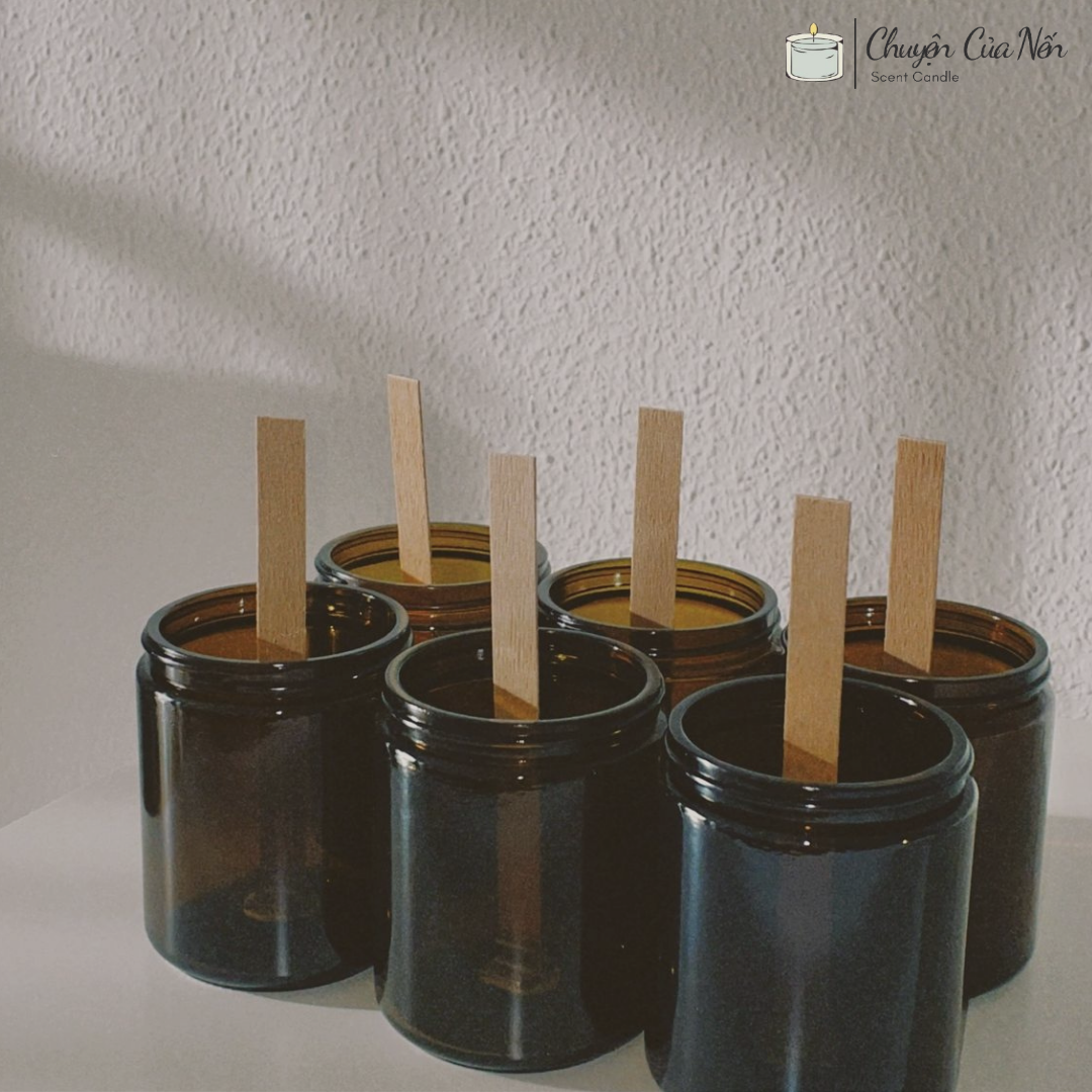 Đổ sáp: Giữ bấc thẳng đứng khi đổ sáp nóng chảy vào ly/hũ.