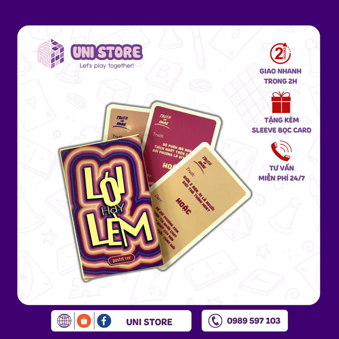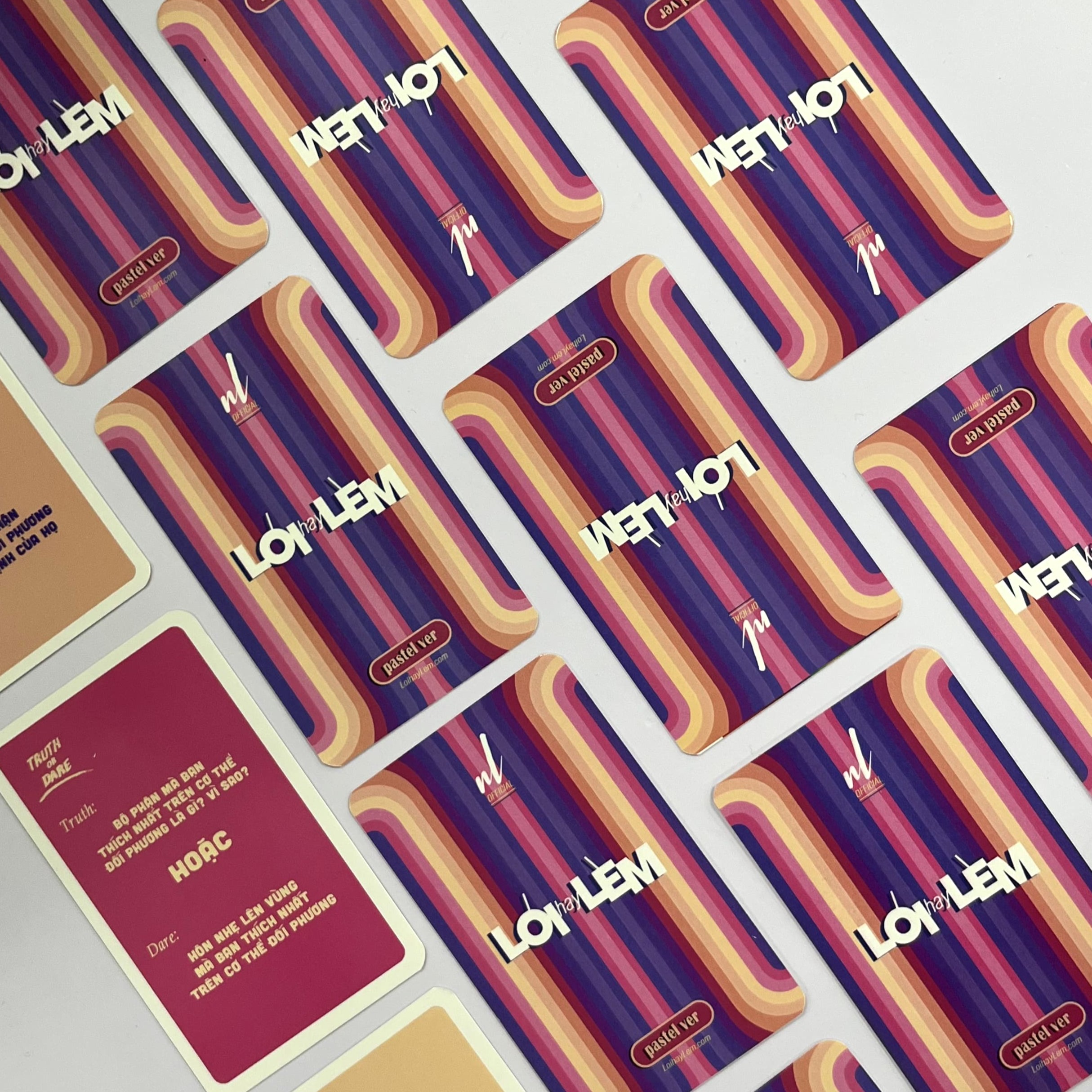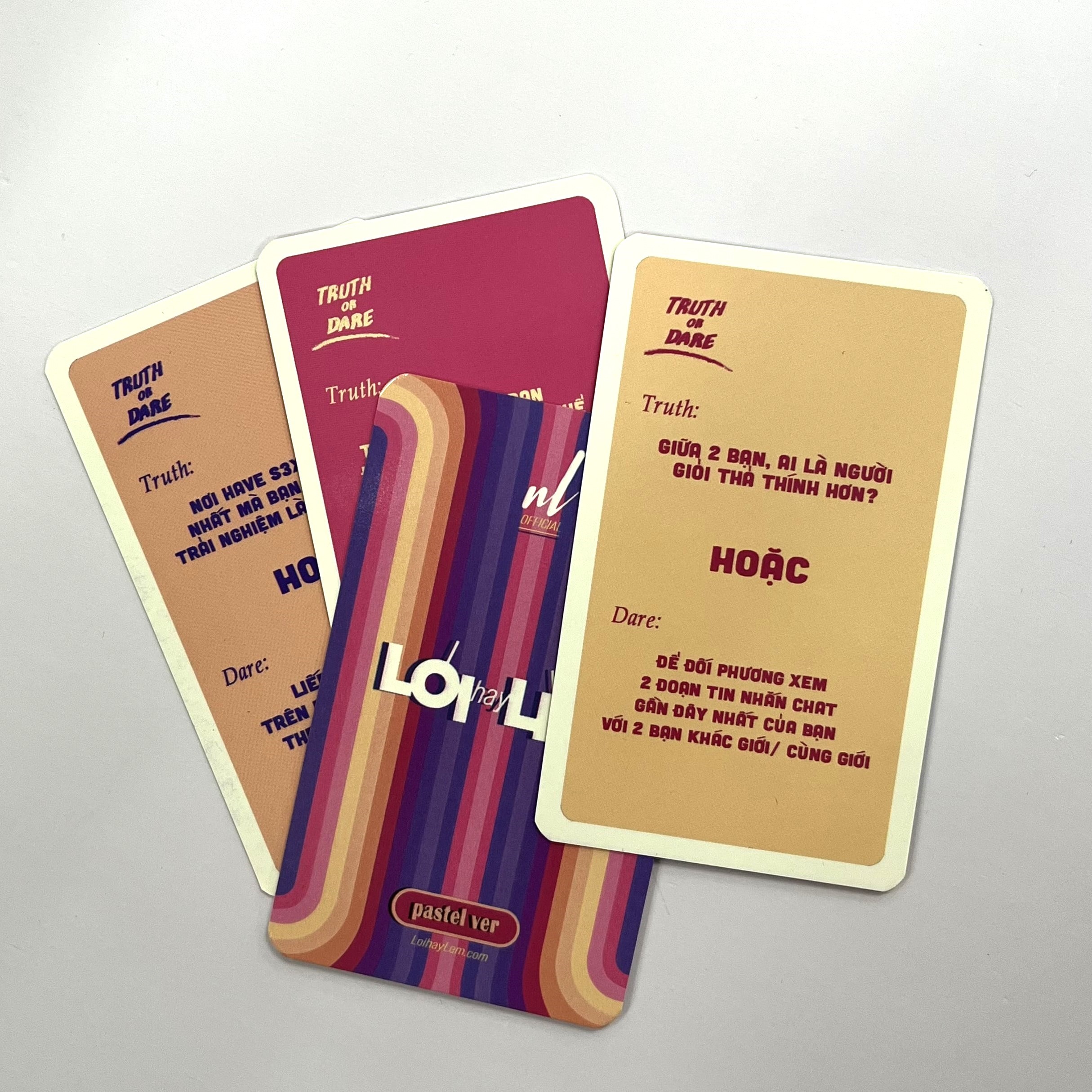 Bộ bài gồm 30 lá với 30 Truth và 30 Dare khác nhau. Mỗi lần chơi, bạn có thể trải nghiệm những điều mới mẻ, tạo nên nhiều kỷ niệm thú vị. Đơn giản là bốc lá và thưởng thức mỗi khoảnh khắc đầy hứng khởi!