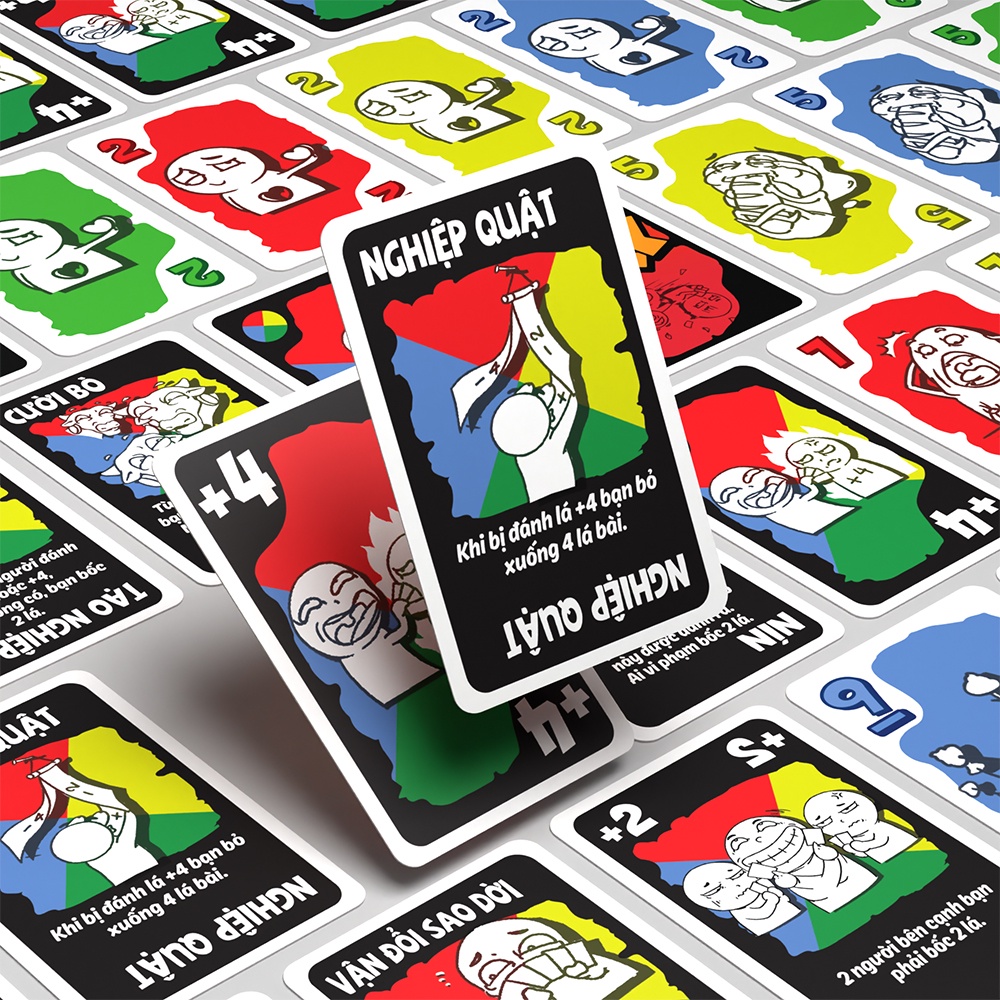 – Nghiệp quật: Chỉ dùng được khi tấn công từ thẻ +4. Người chơi đánh bài +4 phải rút 4 lá bài.