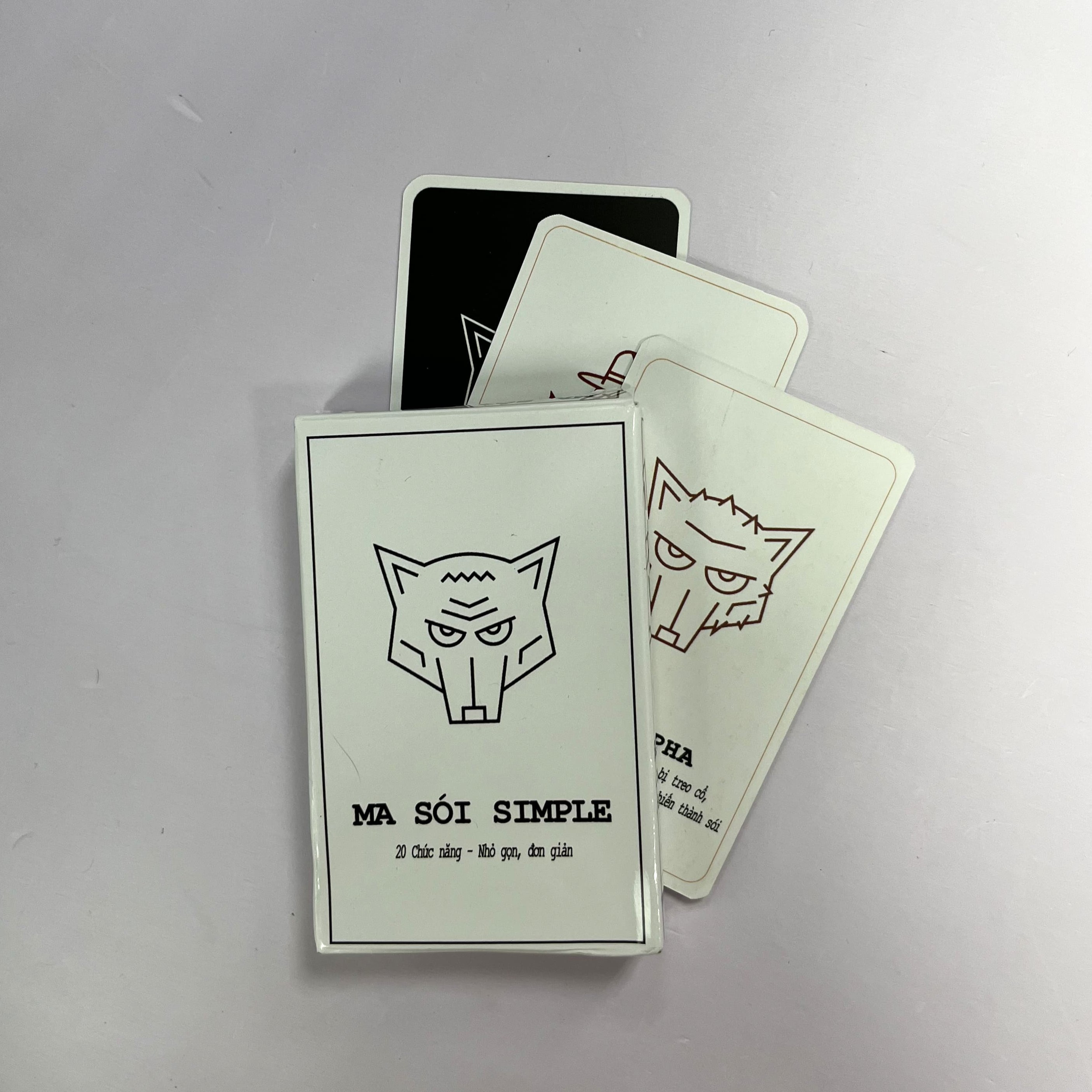 Bộ bài ma sói Simple gồm 20 lá (4 lá sói + 4 lá dân làng không chức năng + 11 lá chức năng + 1 lá quản trò)