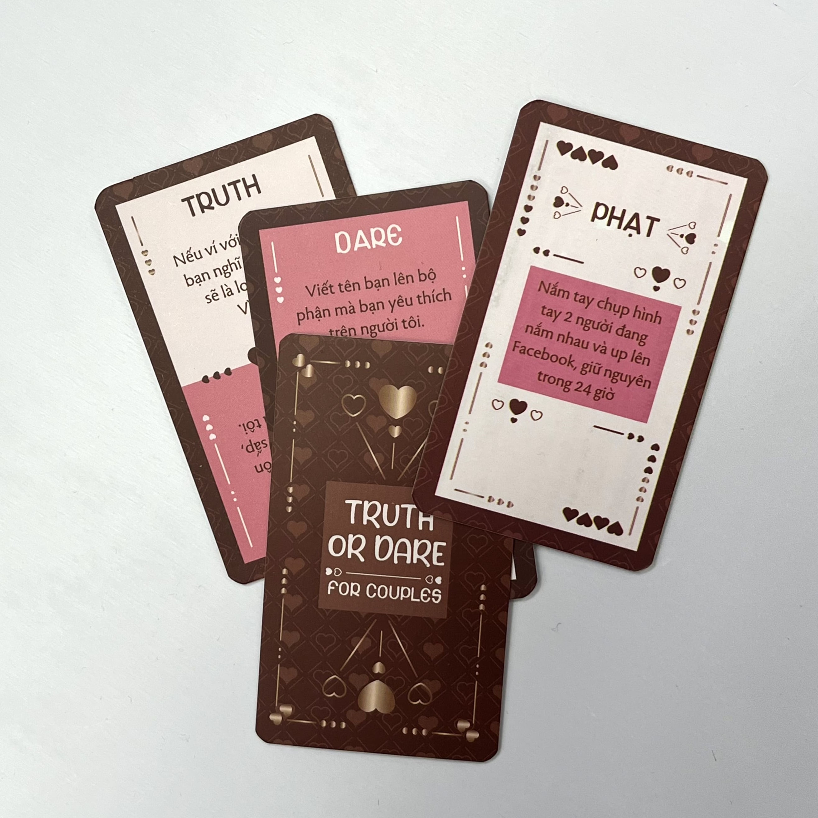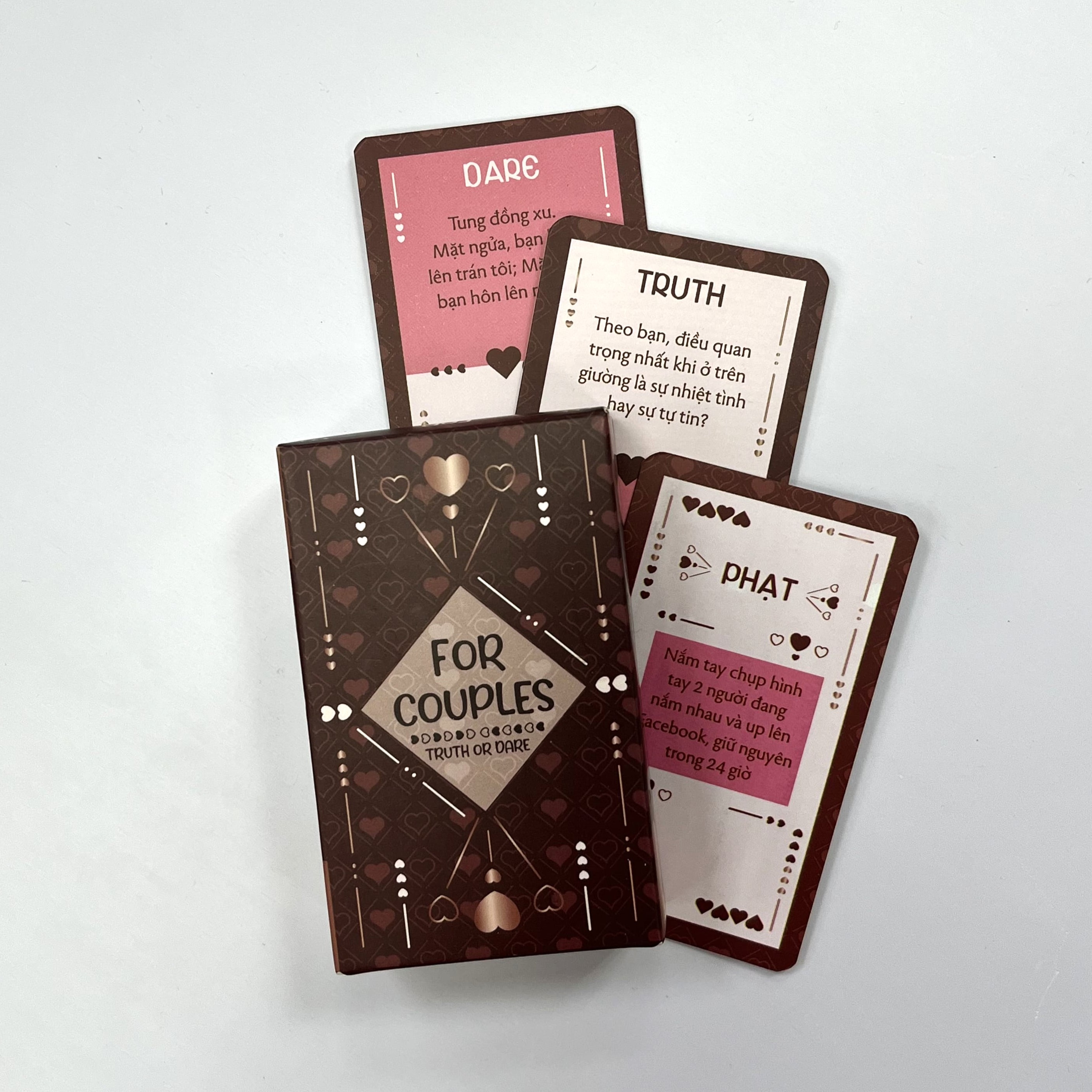 Muốn có một buổi DATING đáng nhớ và thêm phần “mặn mà” khó quên, hãy thử ngay bộ bài “Truth or Dare FOR COUPLE.” Các bạn sẽ hiểu nhau hơn và khám phá những bí mật thú vị về nhau.
