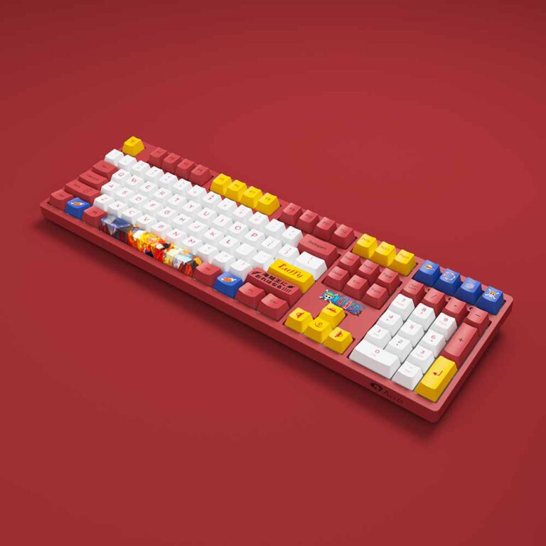 Bàn phím Akko 3108 v2 One Piece – Luffy (Akko switch v2) là một trong những dòng sản phẩm bàn phím cơ lấy cảm hứng từ nhân vật Luffy trong bộ truyện tranh/anime One Piece với màu chủ đạo đỏ đô, vàng, trắng và xanh dương.
