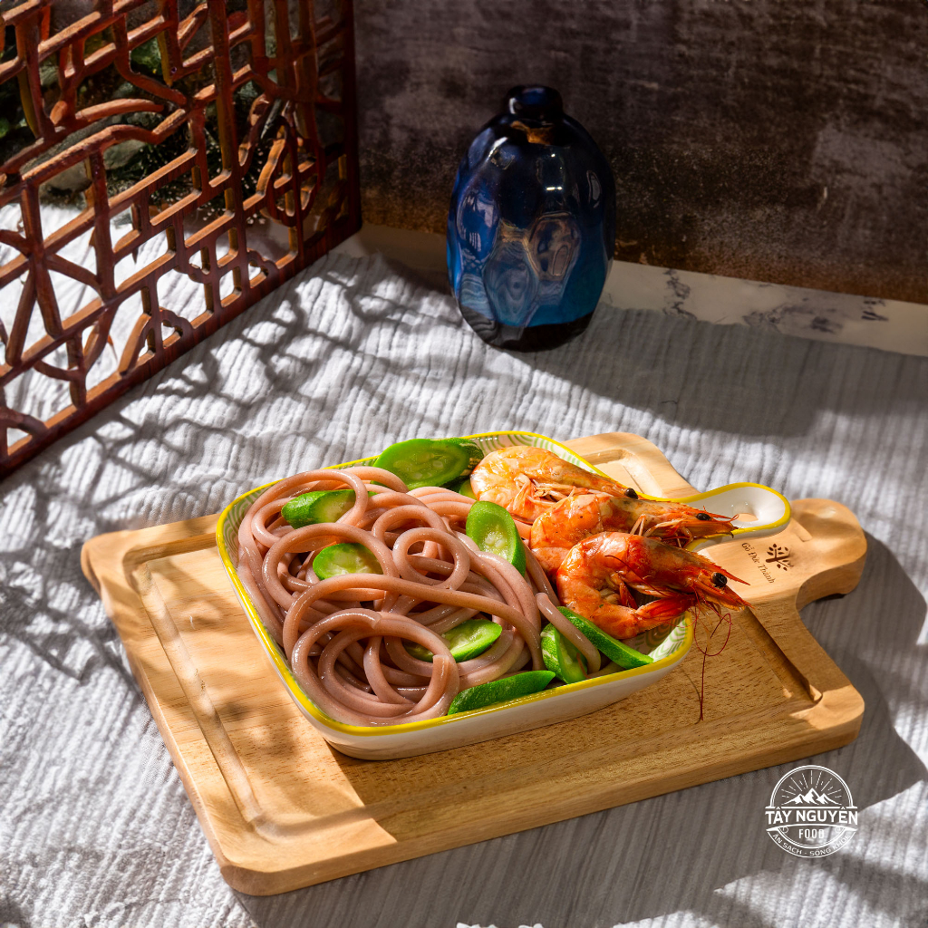 Sản phẩm được làm hoàn toàn tự nhiên, không sử dụng phẩm màu, chất bảo quản, chất tạo độ dai hay bất kỳ hóa chất độc hại nào. Khi nấu lên sợi vừa dai vừa mềm, hương vị vẫn giữ trọn tinh túy từ các nguyên liệu thuần tự nhiên.