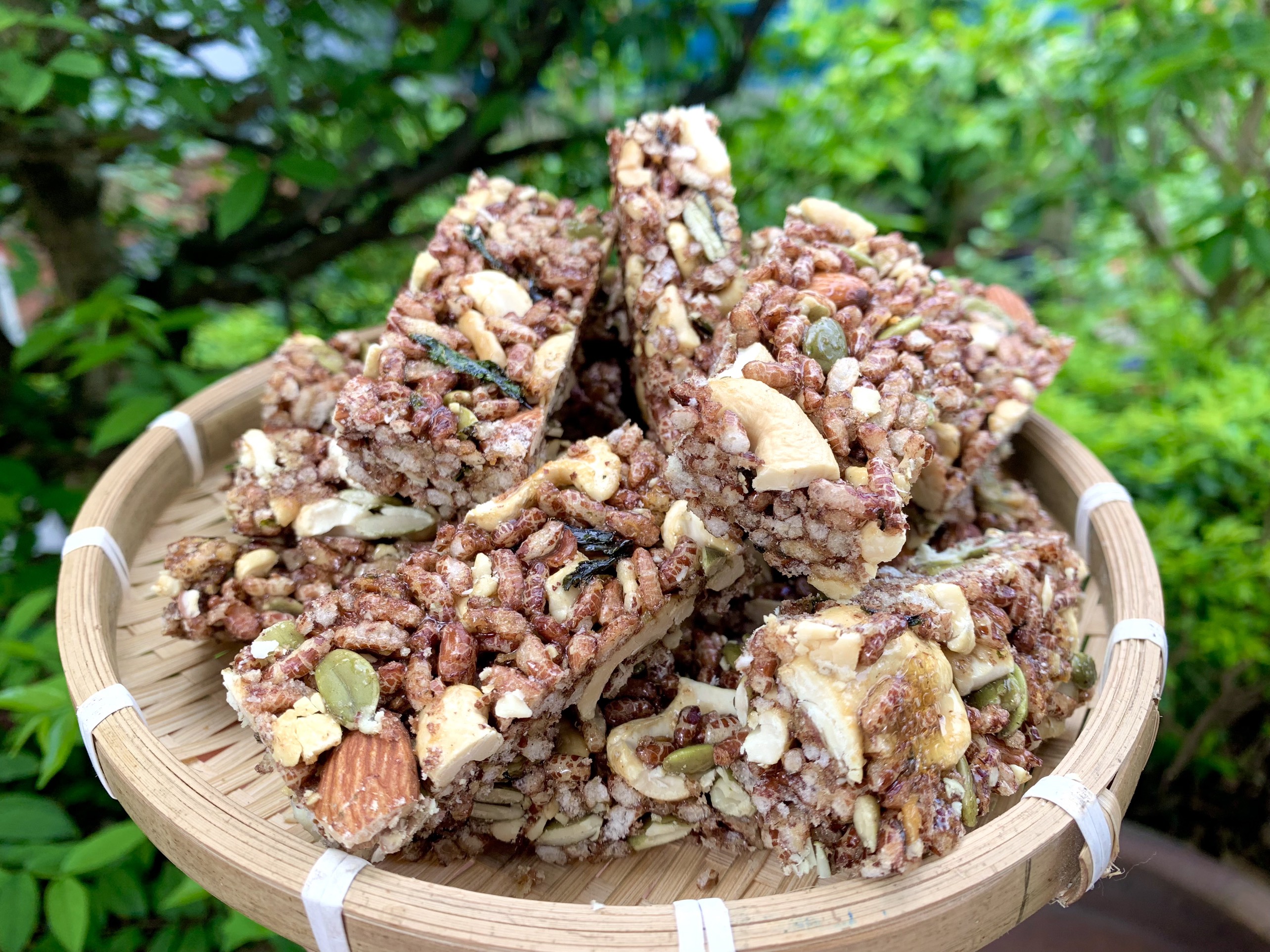 Thành Phần: Gạo nổ, hạt điều, bí xanh, hạnh nhân, rong biển, mạch nha
