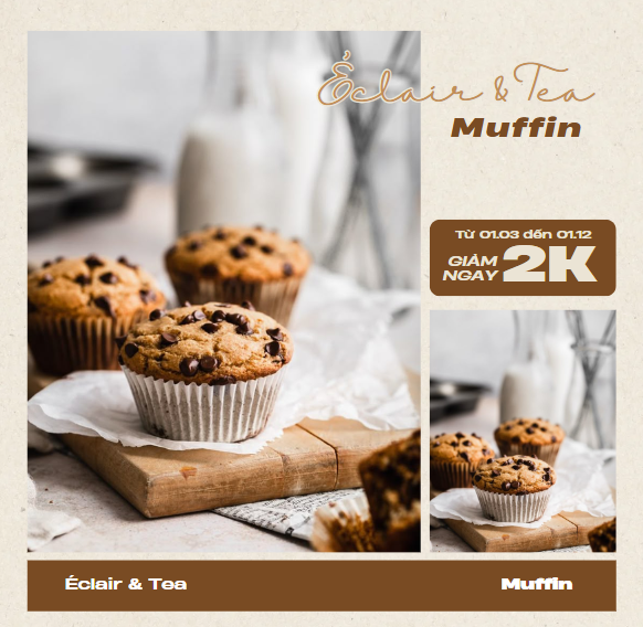 Mô tả: Muffin mềm xốp với lớp bánh vàng ươm, điểm xuyết những viên chocolate chip tan chảy thơm lừng, mang đến hương vị ngọt ngào và hấp dẫn ngay từ lần cắn đầu tiên. Bánh thích hợp dùng cho bữa sáng, ăn nhẹ hoặc làm món quà nhỏ xinh tặng người thân, bạn bè.