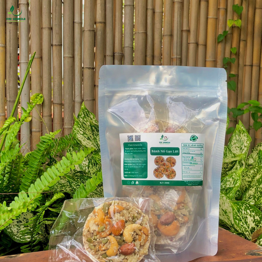 Sản phẩm: Bánh Nổ gạo lứt mix hạt dinh dưỡng nhà Vini – 500g x 1 Hộp
