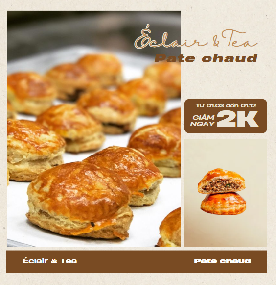 Mô tả: Pate chaud với lớp vỏ ngàn lớp vàng óng, giòn rụm, ôm trọn phần nhân thịt đậm đà bên trong. Khi cắn vào, bạn sẽ cảm nhận sự hòa quyện hoàn hảo giữa vị béo thơm của bơ, vỏ bánh giòn tan và nhân thịt mềm ngọt, đậm vị. Thích hợp dùng cho bữa sáng, ăn nhẹ hoặc mang theo như món ăn tiện lợi.