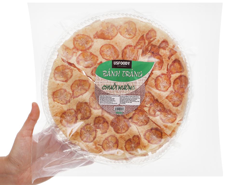 Với hương vị thơm ngon, ăn không ngán lại phù hợp cho những ai thích ăn cơm cháy. Bánh tráng chuối nướng USFOOD gói 80g được làm từ khoai mì, nước cốt dừa và chuối,... đem đến cảm giác ngon miệng. Bánh tráng chuối nướngUSFOOD vừa miệng, giòn, có vị lạ nhưng rất ngon