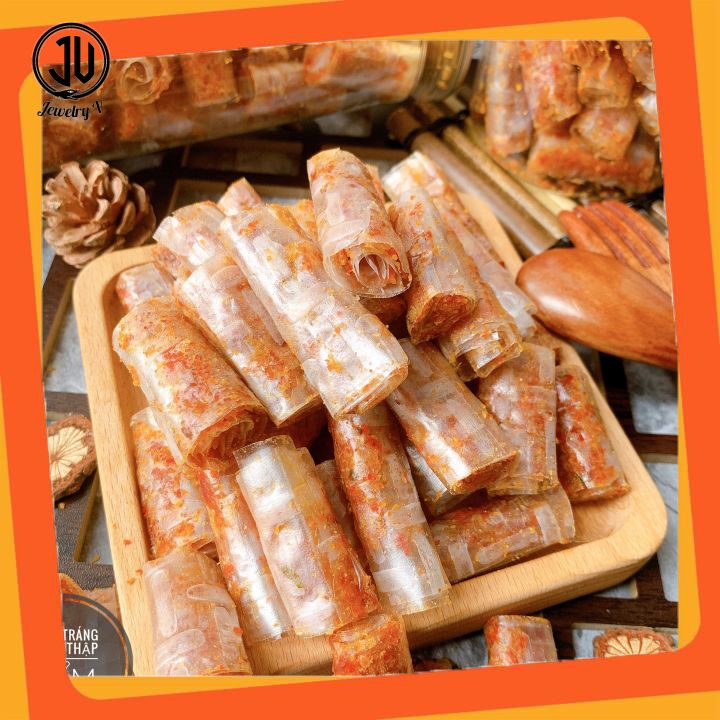 Đầu tiên là bánh tráng mỏng được làm từ bột gạo tinh khiết, tạo thành những tấm bánh mỏng có độ dẻo, dai và mịn. Bánh tráng thường có màu trắng và có mùi thơm đặc trưng.
