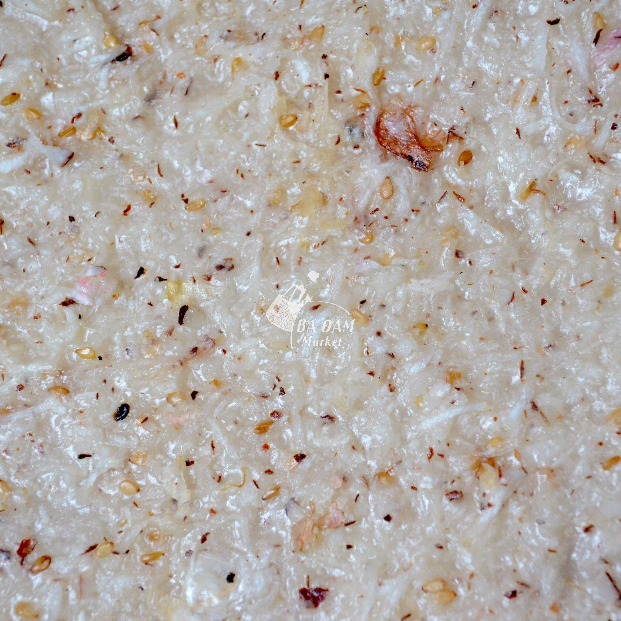Thành phần: bột sắn (củ mì), cơm dừa sợi, nước cốt dừa, mè trắng, muối hột, hành tím, tiêu hạt