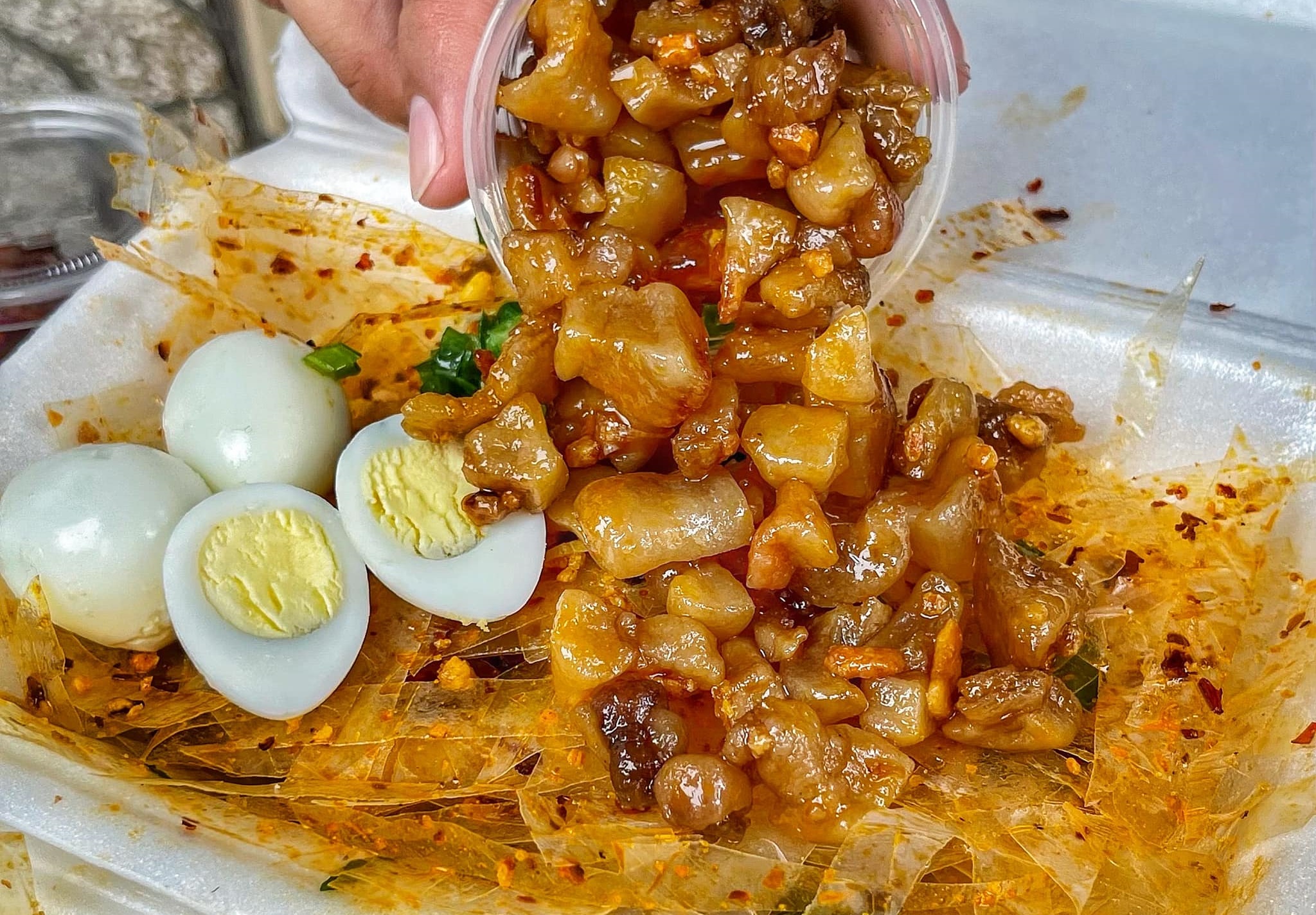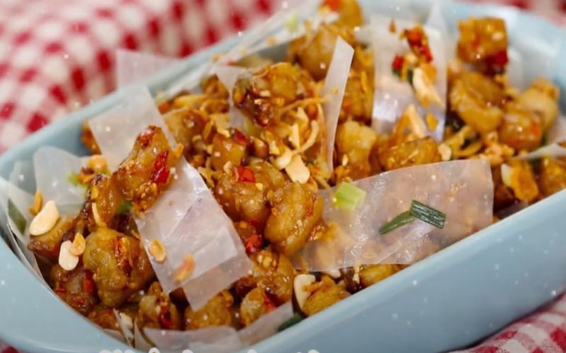 Tóp mỡ vàng nâu hấp dẫn cắn vào giòn tan. Ăn cùng với bánh tráng và chút hành mỡ thơm, vị cay cay của ớt như hòa quyện vào trong miệng ăn hoài mà không thấy ngán.