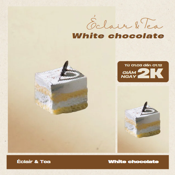 Mô tả: White Chocolate là chiếc bánh mang hương vị nhẹ nhàng, thanh thoát với lớp kem sô-cô-la trắng mịn màng phủ đều trên nền bánh bông lan mềm xốp. Vị ngọt dịu, béo nhẹ của sô-cô-la trắng hòa quyện cùng lớp kem tươi thanh mát mang đến cảm giác dễ chịu và tinh tế trong từng miếng bánh.