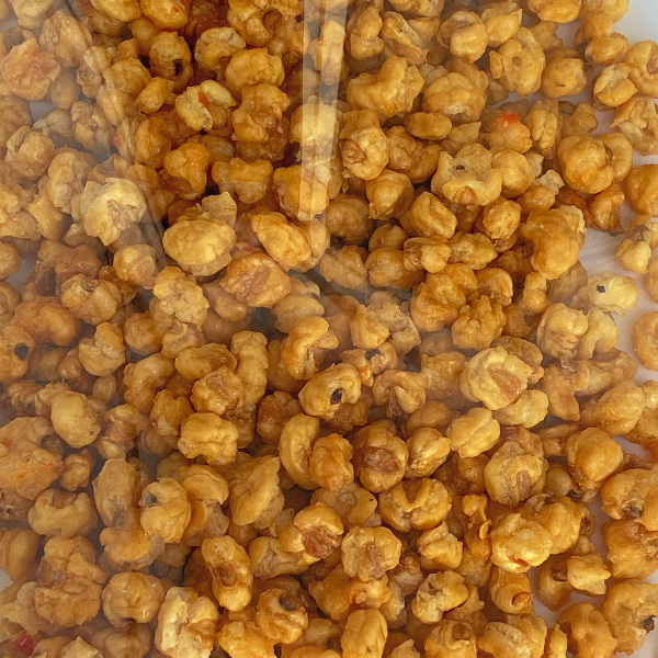 Thiết kế bao bì đổi mới, chất lượng. Sản phẩm bắp rang tỏi ớt được bao bọc bởi hủ thủy tinh nắp gỗ chắc chắn, thân thiện với môi trường, có thể tái sử dụng bao bì. Thích hợp làm quà tặng trong dịp lễ, Tết. Sản phẩm được chế biến bằng phương pháp chiên không dầu.