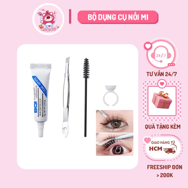 Lông mi và ấn chặt cho đến khi chất kết dính khô.