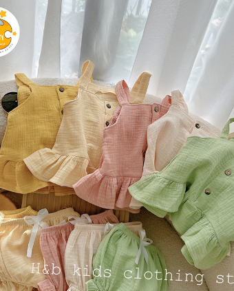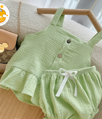 Bộ Đồ Bé Gái Cúc Gỗ Dễ Thương Hai Dây, Set Đồ Trơn Màu Pastel Cho Bé Vải Xô Muslin Mát Cho Bé từ 5 - 15kg TuTi TuTi Baby TUTI24