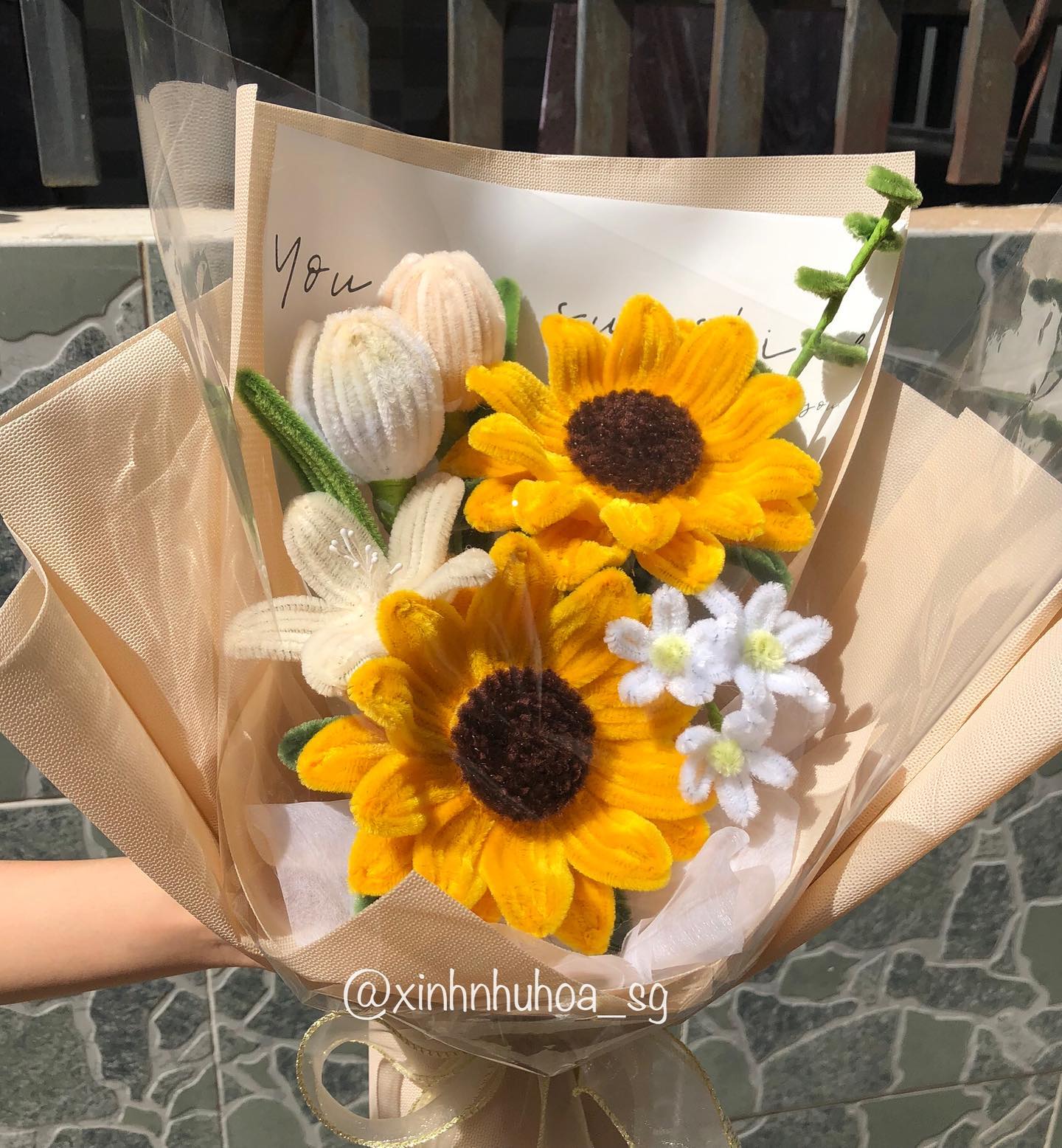 Ở đây có hoa len handmade cực xinh hãy cùng tạo 1 giá trị yêu thương món quà tặng nói lên tất cả tình cảm Bạn dành cho người thương! Bạn đang cần đặt một bó hoa đẹp sang trọng để dành tặng những người mà bạn yêu quý, trân trọng. Bạn muốn những hoa len handmade lên gửi gắm những lời muốn nói, tấm lòng của bạn cho người được nhận nó. Hãy để Sweetflower bee chúng tôi làm điều đó giúp bạn.