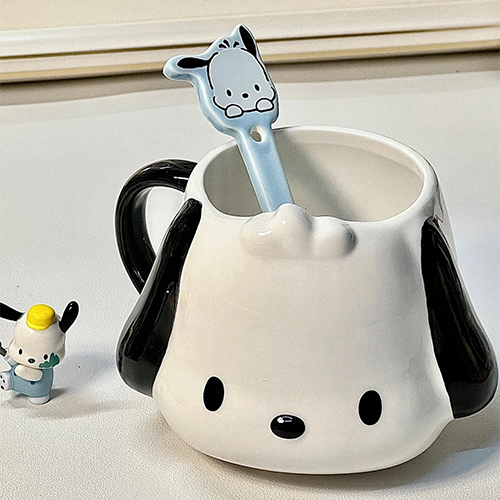 Bộ ly và muỗng sứ uống trà cà phê VTT hình chú chó Pacha dễ thương