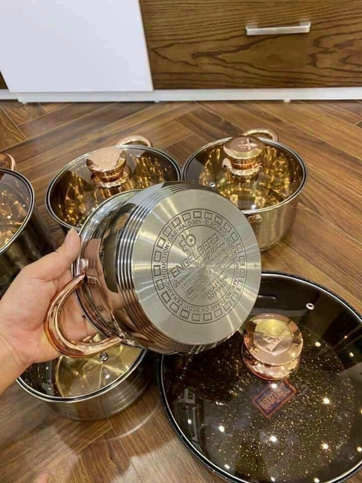 – Dưới đáy nồi đều có khắc tên nhãn hiệu ENGELBERG (một nhãn hiệu nổi tiếng của Đức về gia dụng)