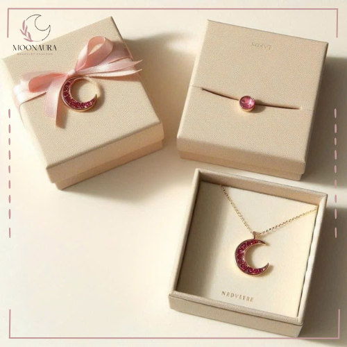 Bộ trang sức MoonAura Crescent Ruby là lựa chọn lý tưởng để làm quà tặng người thương hoặc tự thưởng cho chính mình, giúp bạn luôn tỏa sáng và thu hút mọi ánh nhìn.
