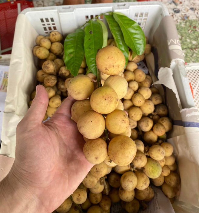 Quả bòn bon có hình tròn, vỏ dẻo, phần thịt có màu trắng