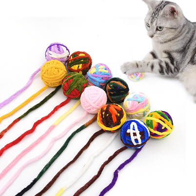 Tên: Đồ chơi bóng bằng len có dây cho mèo chơi