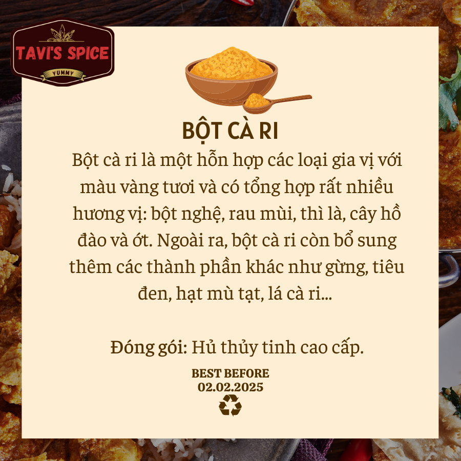 Bột Cà Ri SALA SPICE được pha chế theo công thức ngon nhất , giúp bạn nấu món cà ri dễ dàng , nhanh chóng không mất công chuẩn bị nhiều thứ nhưng vẫn có món cà ri thơm ngon thành công.