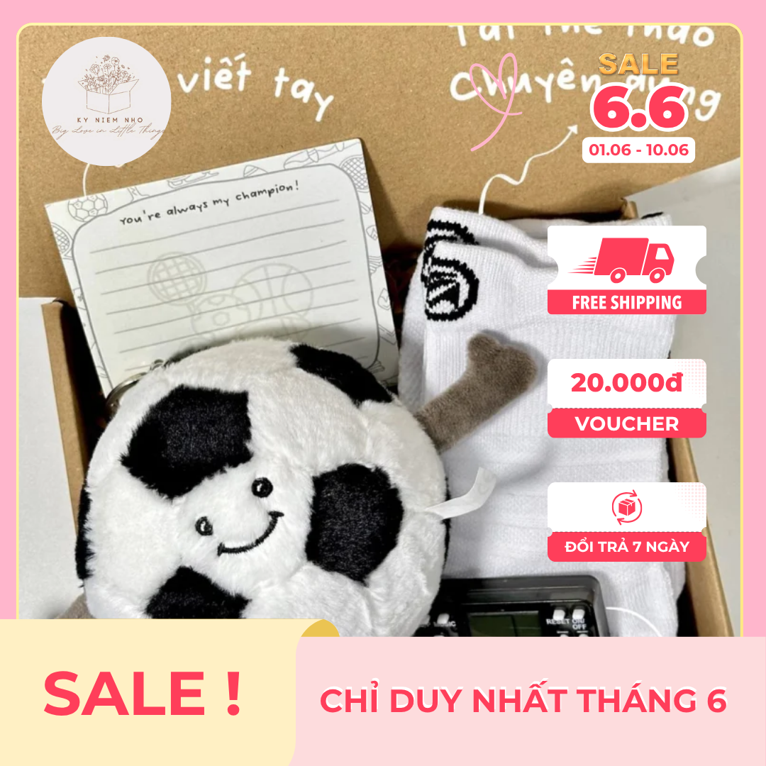 Box set hộp quà cho bạn trai Gấu bông thể thao bóng đá hỗ trợ viết thiệp
