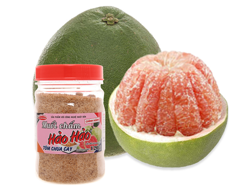 Bưởi da xanh & muối chấm Hảo Hảo 120g là một trong những món ăn được rất nhiều người ưa chuộng. Bưởi là loại trái cây màu hồng đỏ, vị ngọt thanh, tốt cho sức khoẻ, muối Hảo Hảo là loại muối "quốc dân" được sản xuất theo công nghệ Nhật Bản đảm bảo an toàn khi sử dụng