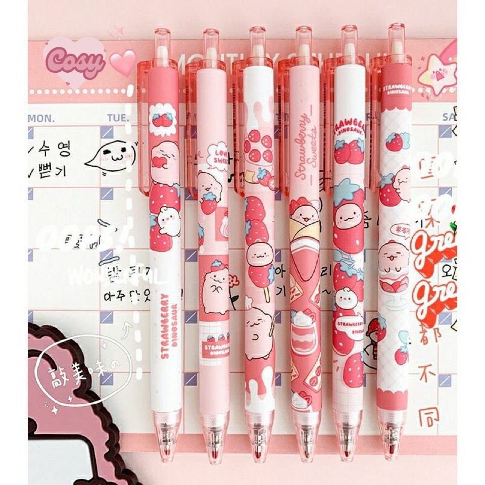 Bút bi bấm bé dâu tây hồng đỏ dễ thương