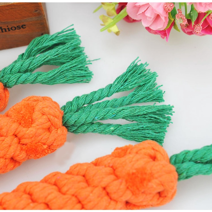 Đồ chơi nhai gặm cho chó mèo cà rốt bện thừng ✨ Sản phẩm đẹp, chắc chắn và sử dụng được lâu hơn đồ chơi nhồi bông. Không dễ bị chúng xé rách. Không những giúp thú cưng giải stress mà nó còn là vật dụng trang trí để chỗ ở của bé thêm phần sang chảnh ^^ ✨ Xương sợi bông đặc biệt giúp sự phát triển lành mạnh của răng và nướu răng, loại bỏ bụi bẩn ra khỏi răng, giúp bạn dễ dàng chơi với thú cưng và tăng cường tình cảm với chúng