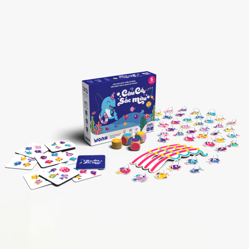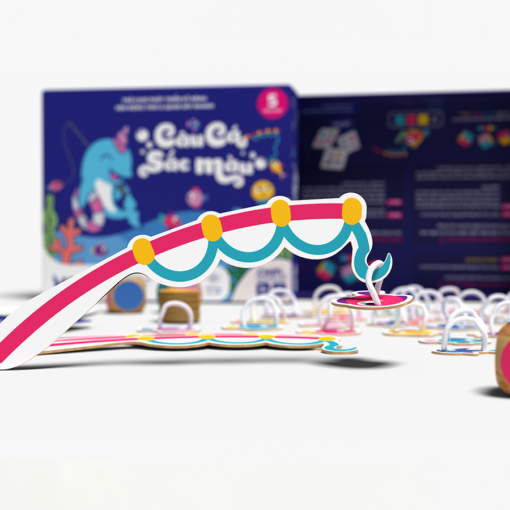 Câu cá sắc màu là bộ đồ chơi trí tuệ kết hợp giữa câu cá truyền thống. Đây là trò chơi vận động tinh giúp rèn luyện các cơ tay linh hoạt, bên cạnh đó, bé được rèn luyện các kỹ năng như tư duy logic, nhận diện màu sắc và quan sát nhạy bén.