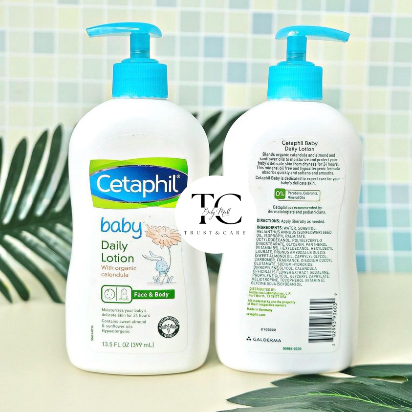 Cetaphil daily lotion baby làm từ hoa cúc Calendula hữu cơ - một loại hoa quý, có khả năng giữ ẩm cho da bé suốt 24h đồng hồ. Kết hợp cùng hạnh nhân và đầu hạt hướng dương, HA, giúp da bé khỏe mạnh, không còn lo khô nẻ, viêm da, chàm, hăm nách, cổ,...