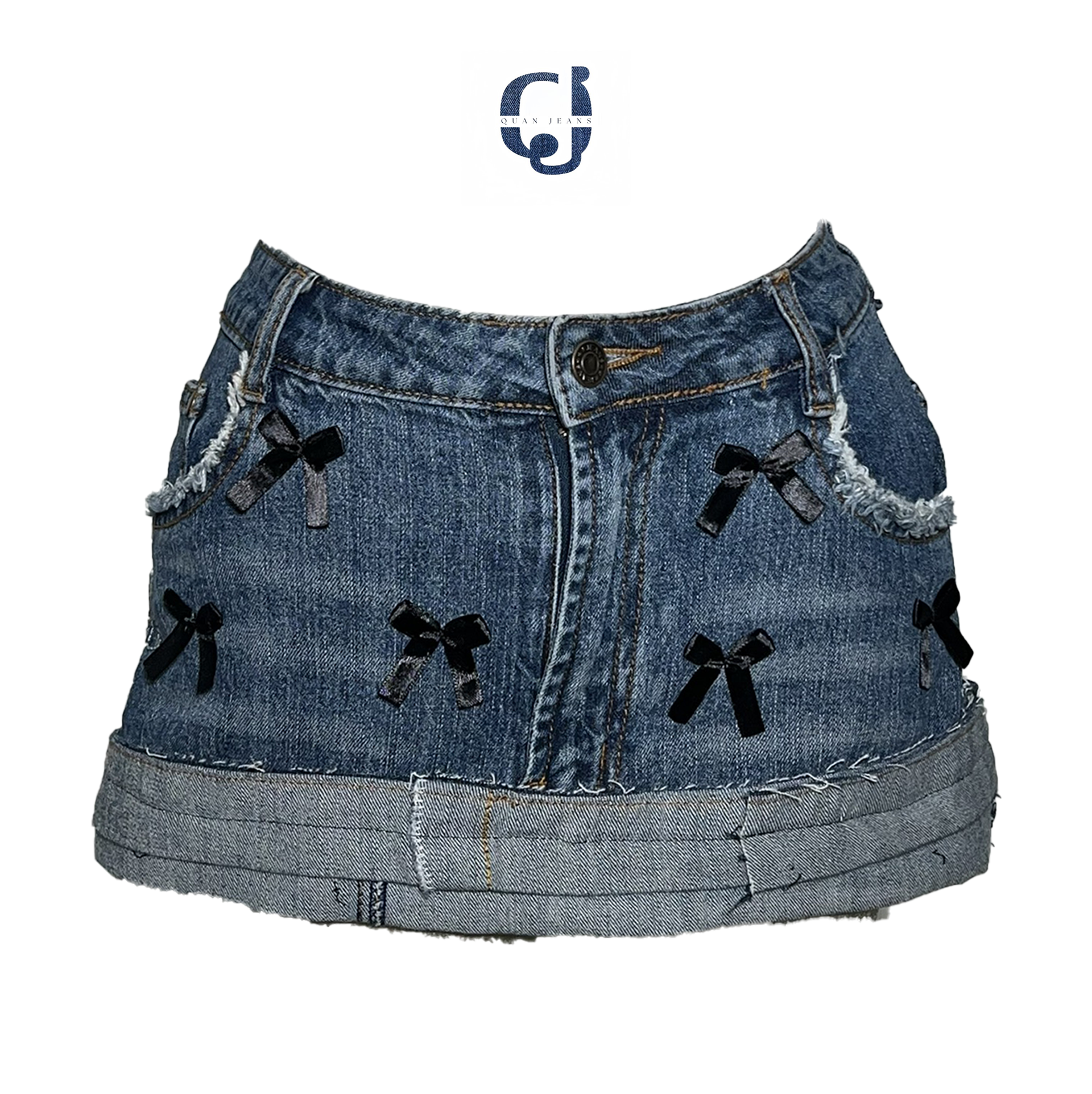 Chân Váy Jeans Ngắn Custom Nơ Đen – Đặt Hẹn Với Phong Cách Riêng