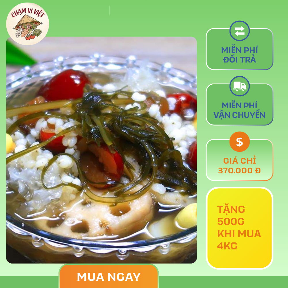 Chè sâm bổ lượng là sự kết hợp thanh mát giữa các nguyên liệu bổ dưỡng như nhãn nhục, táo đỏ, hạt sen và rong biển. Điểm đặc trưng của món chè này là vị ngọt thanh nhẹ, nước trong mát lạnh, giúp giải nhiệt và bồi bổ cơ thể hiệu quả. Đây là món tráng miệng quen thuộc, thích hợp dùng trong những ngày nóng hoặc sau bữa ăn để cân bằng vị giác.