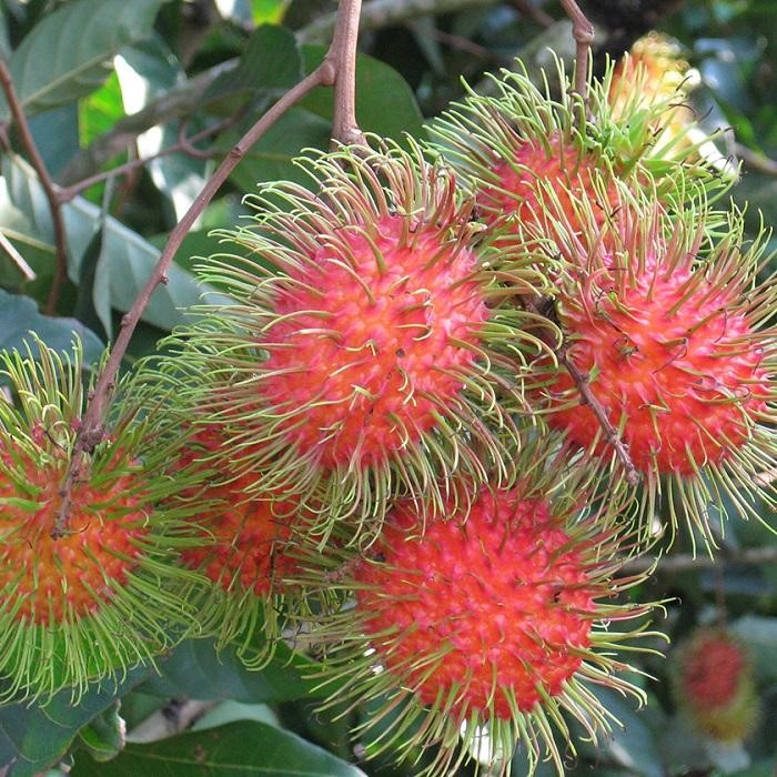 Thân, tán, lá: có thể cao 8 tới 10 m, lá đơn, phiến lá hình trái xoan, đầu và đuôi lá nhọn, mọc cách. Lá nhỏ màu xanh non, khi già xanh đậm.- Chôm chôm ngay sau khi mua về, cần được rửa sạch, để ráo và bảo quản trong ngăn mát tủ lạnh, tránh tác động của môi trường sẽ giúp chôm chôm tươi lâu từ 2 - 3 ngày.