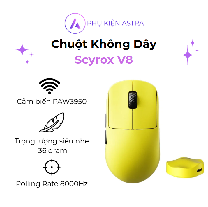 | Kết nối | Wireless: Tối đa 8000Hz (dongle 8000Hz đi kèm) Wired: USB-C (1000Hz) |