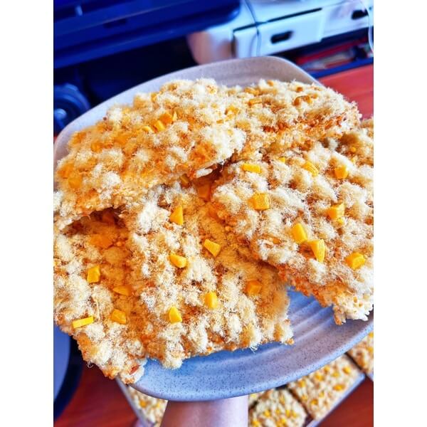 Cơm cháy chà bông phô mai trứng muối được làm gạo, chà bông, phô mai và trứng muối
