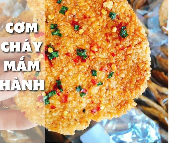 - Cơm cháy mắm hành 1 gói gồm 3 miếng nhỏ 100g - Với miếng cơm cháy giòn rộp cùng vị béo của mỡ hành và vị mặn của nước mắm, cay the của ớt tạo thành món cơm cháy thơm ngất ngây lòng người.