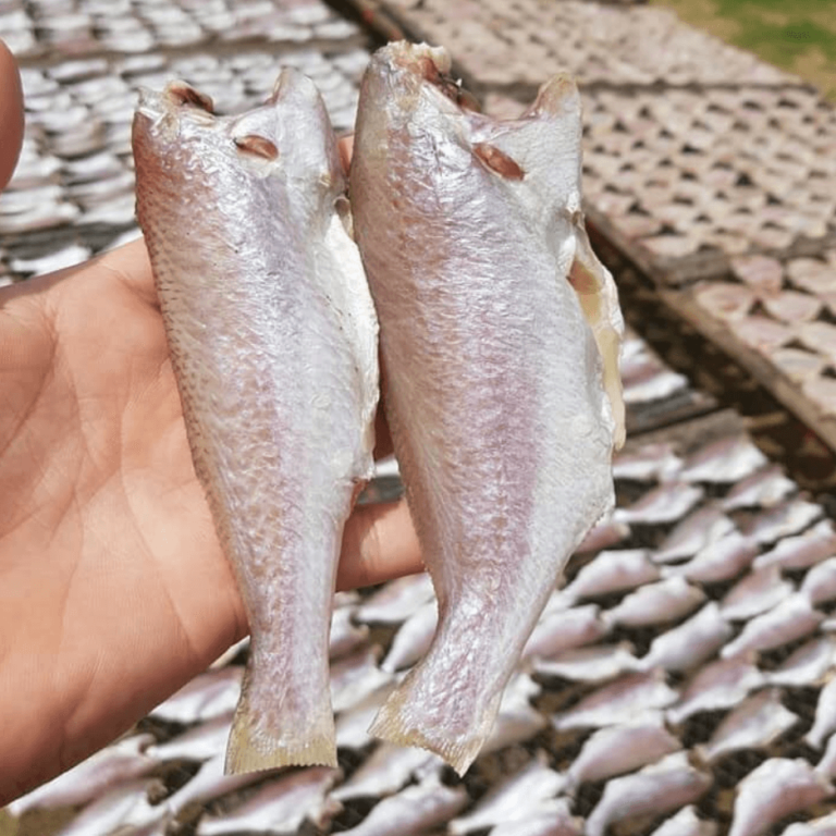 Khô cá đù Cà Mau nổi bật với thịt cá mềm ngọt, phơi nắng vừa tới để giữ độ ẩm nhẹ trong miếng cá. Vị mặn dịu, thơm đặc trưng, thích hợp để chiên giòn hoặc rim mắm tỏi ớt – càng ăn càng cuốn.