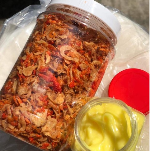 Thành phần: Bánh tráng phơi sương, nước me, bơ, đậu phộng, hành phi, sả tế.